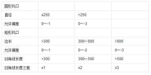 表2風口尺寸允許偏差單位:mm