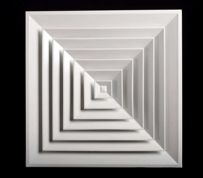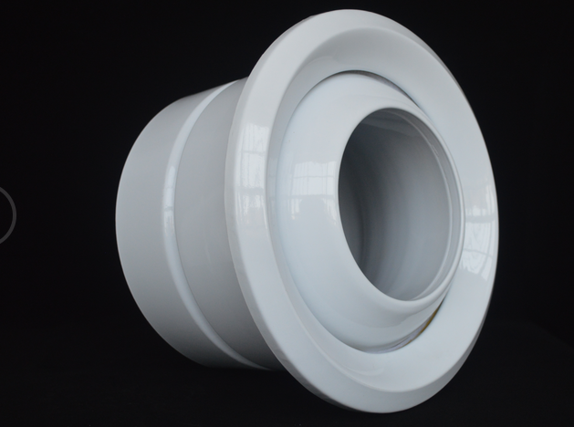 (7)旋流風口發出旋轉射流,具有誘導比大、風速衰減快的特點。它可用作空調通風系統中的高值、低速。大溫差送風可以減少風口數量。它可以安裝在天花板或天花板上,并可用于3米以內的低空間。也可用于兩種高度的大面積送風,高度甚至可達10米以上。